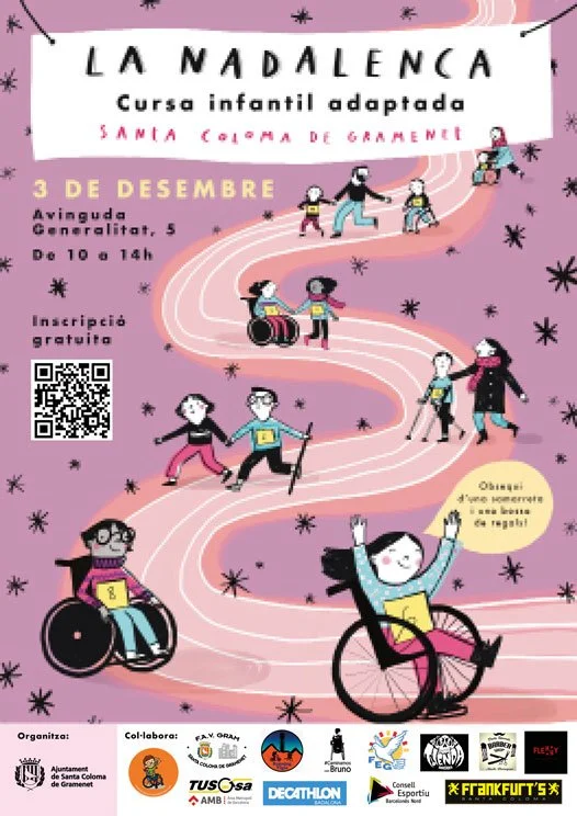 Illustration and design of the Nadalenca poster, a children's race adapted for children with disabilities.